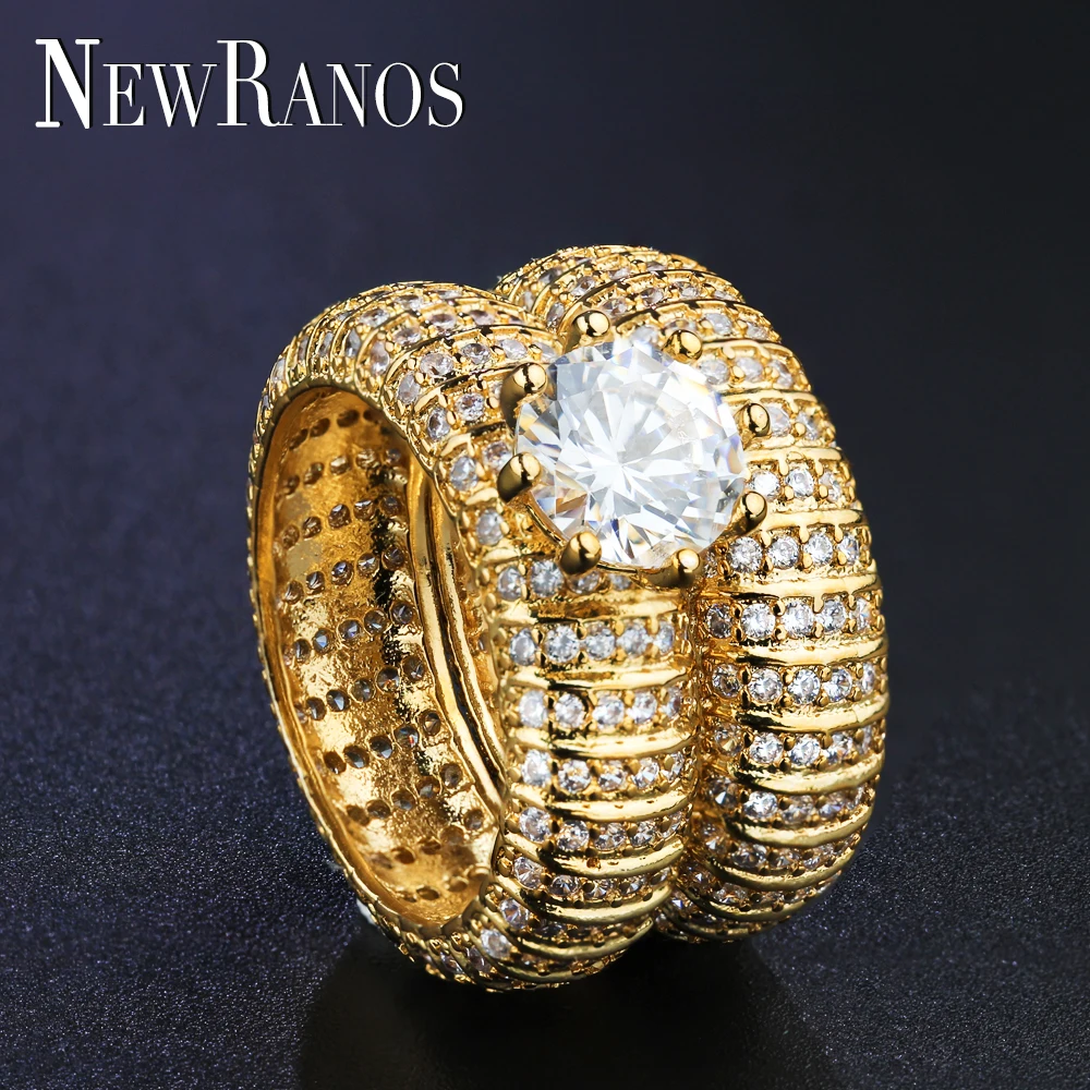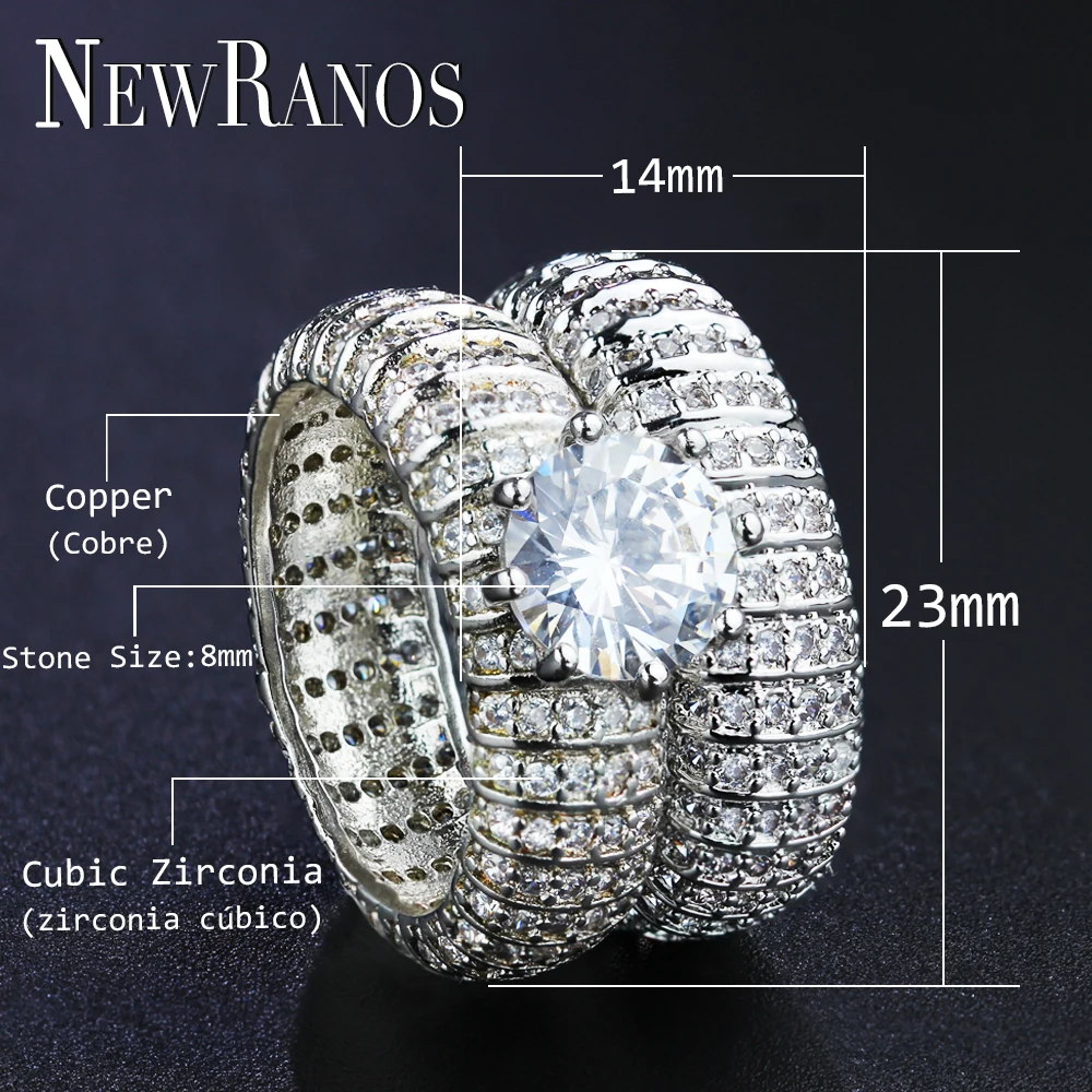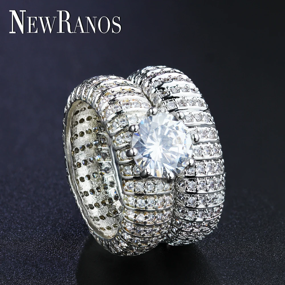 Best Newranos Crystal Wedding Ring Set 2Pcs/Set Silver Color Double Ring for Engagement Party Women Fash