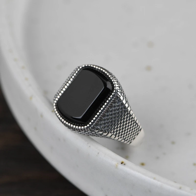 Best Seller GAGAFEEL 925 Sterling Silver Black Stone Rings For Men Women Vintage Silver Open Ring Punk Thai Sil