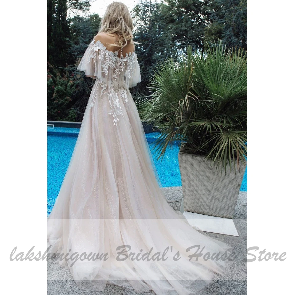Lakshmigown Champagne Tulle Dress Wedding Boho Summer Beach Bridal Gowns Abito da Sposa 2020 Floral